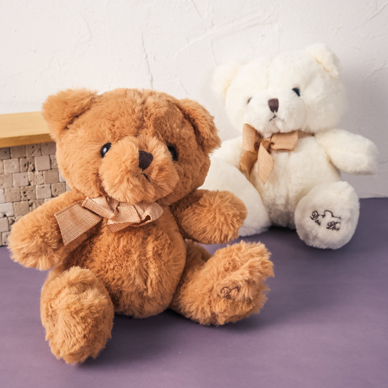 首元に上品なリボンを結んだ愛らしいくま ぬいぐるみです。